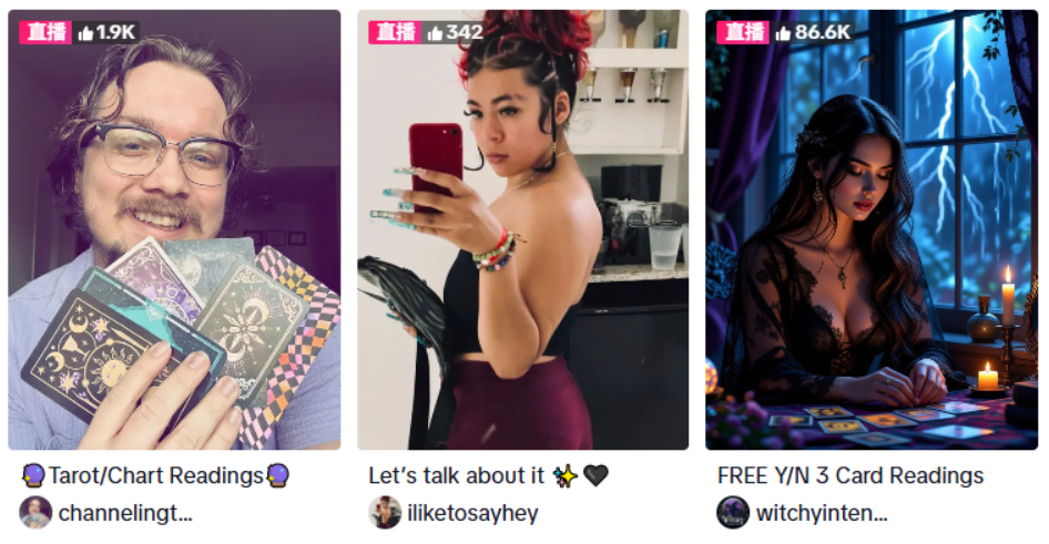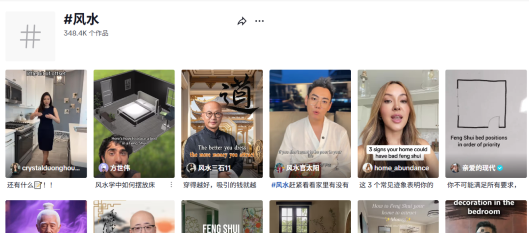 还有在如 #FengShui、#Ai Generated Astrology 等相关话题标签中,用户习惯在这里分享 AI 算命体验和风水挂件、水晶星座运势等开箱视频,形成了良性口碑传播。其内容形式涵盖了各种场景化视频(如“水逆期自救指南”)、KOL 种草(灵性博主推荐水晶扫帚)、直播互动(AI 占卜师在线解读),使得玄学类内容得以能“泛娱乐化”方式迅速传播。