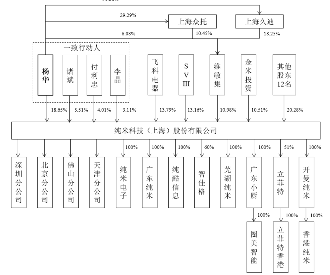 值得注意的是,上市公司飞科股份,持有纯米科技 13.7945% 的股权,同时在纯米科技董事会中派有代表并参与财务和经营政策的决策。