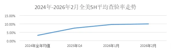 2024 年-2026 年 2 月全美 5H 平均查验率走势