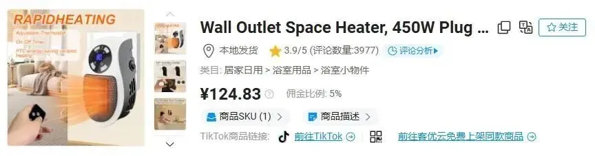TKFFF 进一步发现,该产品在 TikTok 美区的运营布局极具策略性。初期它以 “浴室取暖” 为核心定位,深耕家居用品类目,同款浴室款迷你电暖器销量表现十分惊人。
