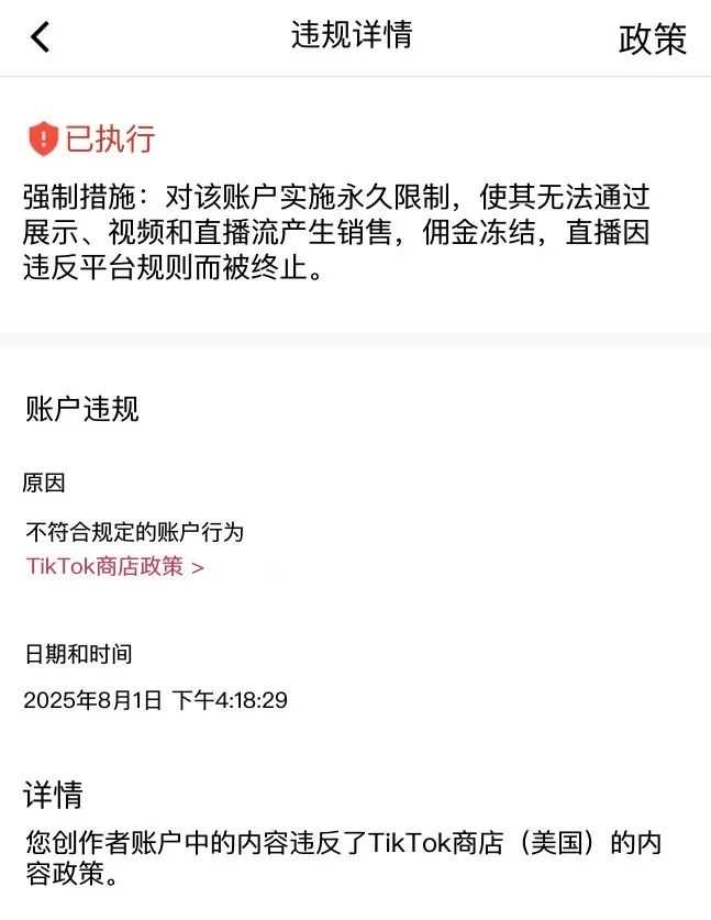 6、音频违规:4、5、6 月太多人用爆款音色批量矩阵TikTok内容,导致TikTok审核机制升级,新增音频检测。若音频用了爆款脚本、文字甚至音色,相似度达标,哪怕画面原创,也会被判非原创违规。