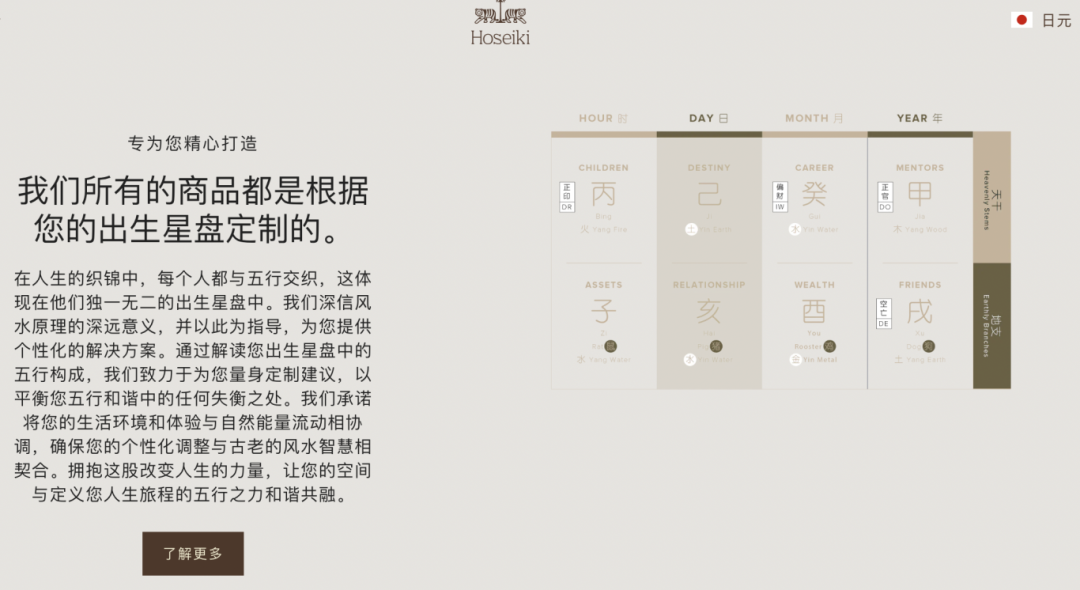 例如,几周后网站会根据用户之前的测算结果推送新品:“上次测算你缺木,新的木属性项链已上线。”