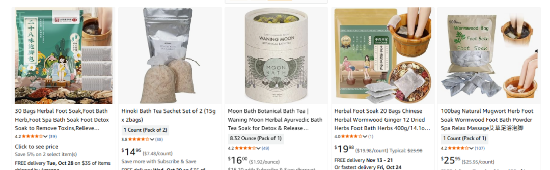 与 Etsy 上注重包装视觉的风格不同,Amazon 平台的中草药浴包通常包装较为朴素,其卖点更多集中于突出产品的功效与所用植物的特性。在这些产品中,标题或描述包含“草本”“中药”“天然”“能量疗愈”等关键词的商品,普遍销量较好。