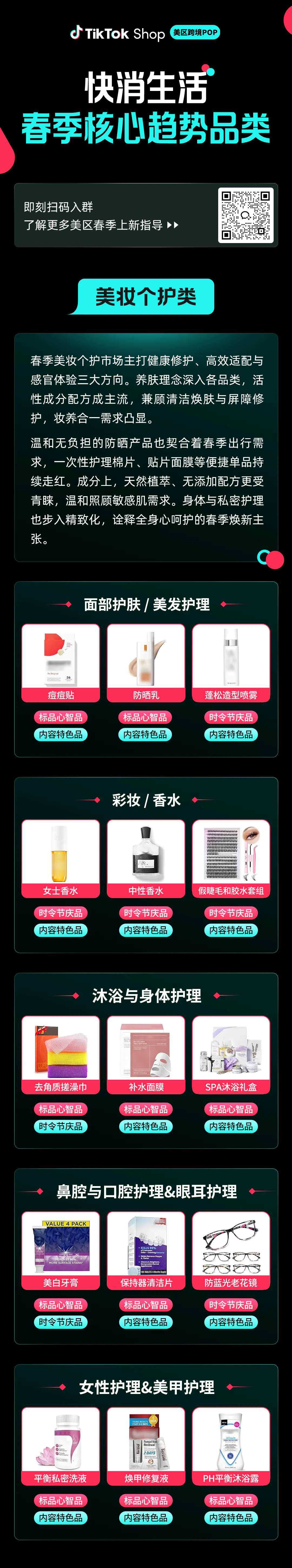以上为TikTok Shop快消生活品类春季趋势热招品,即刻扫码入驻,联系官方经理,抢跑春季上新!