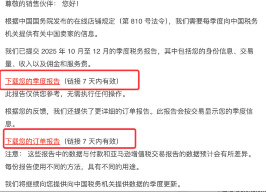 这两天,跨境卖家圈里,一句“不是说境外主体不报送吗?”彻底刷屏。不少卖家透露,自己用香港公司、美国公司注册的亚马逊店铺,全都收到了 2025 年 Q4 的税务数据推送邮件。