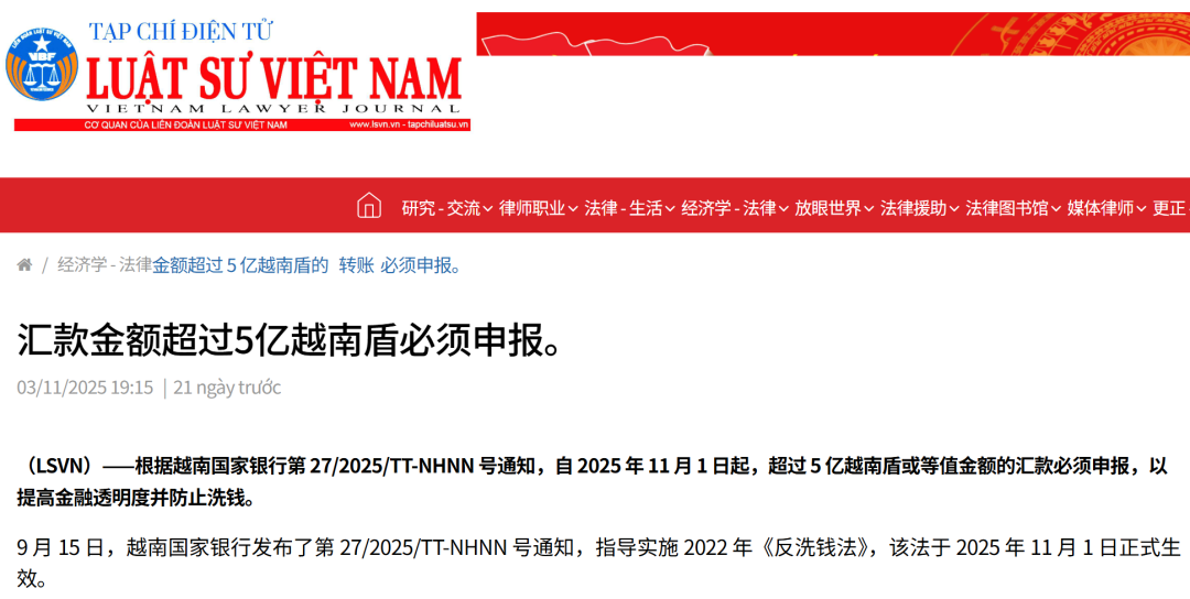 如前文中所说的“越南市场相关资金政策调整”,就与越南国家银行 (SBV) 于近期发布的第 27/2025/TT-NHNN 号通知(第 27 号通知)有很强的关联性。