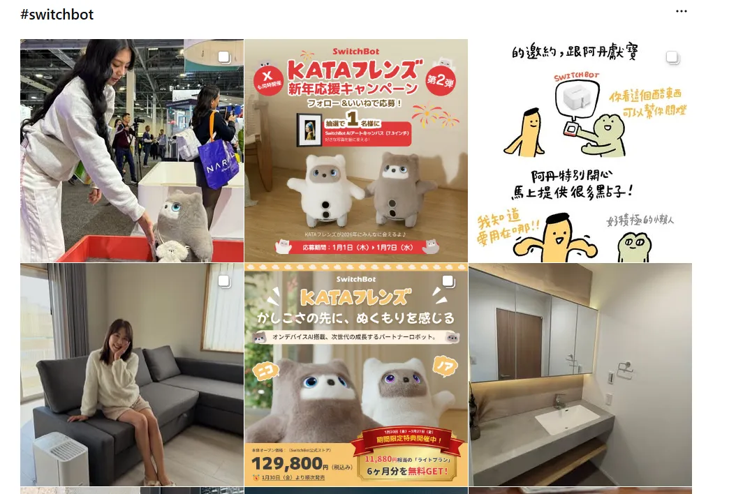 如果说TikTok是“痛点剧场”,Instagram就是SwitchBot的“日本本土化种草阵地”。日本作为SwitchBot的核心市场(2024年收入占比57.7%),用户注重细节与家居美学,SwitchBot针对性调整内容策略,不强调“智能”,而是突出“适配与质感”。