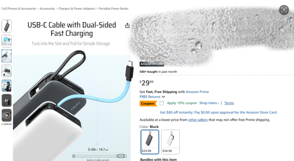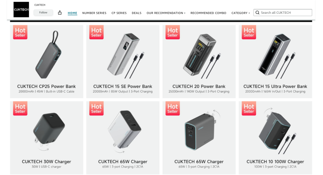 这种“分层覆盖”的产品策略,使 CUKTECH 在核心参数与性价比之间找到平衡。以其爆款 CUKTECH CP25 充电宝为例,拥有 20000mAh 容量,虽然单口最大输出功率仅为 45W,但凭借 29.99 美元的极高性价比与内置 USB-C 线缆的便利设计,在亚马逊同类产品中脱颖而出。