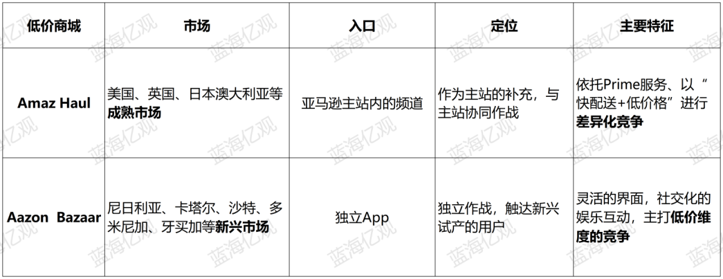 亚马逊手握了两张“低价电商”的牌,左手是 Amazon Haul ,右手是 Amazon Bazaar。在美国、英国、法国、意大利、日本和澳大利亚等“相对发达的市场”,亚马逊推出 Amazon Haul ,而在墨西哥、沙特阿拉伯、巴林、多米尼加、厄瓜多尔等“新兴市场”,亚马逊布局的是 Amazon Bazaar。
