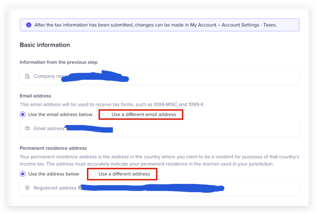 地址这里注意:一般我们找待办公司注册的美国公司地址都是无法正常收取邮件的,社长个人建议改为可收件的美国地址,避免遗漏一些税务账单之类的重要信息。