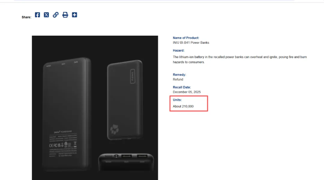INIU 的遭遇并非个例,2025年以来,充电宝行业已陷入“召回潮”。