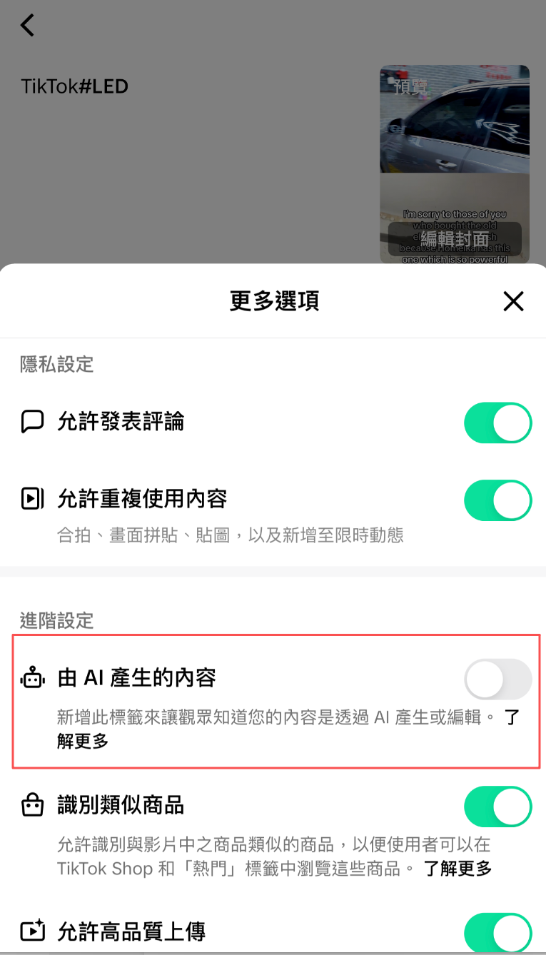 早期TikTok对AI生成内容有限制,但随着AI工具迭代,内容质量提升,平台逐渐 “默认支持AI 内容”(发布视频,可以选择标注 “AI生成”)。