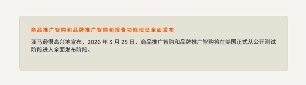 根据官方最新通知,自 2026 年 3 月 25 日起,亚马逊美国站的 Prompt 广告(又称 Rufus 广告)在美国市场结束公开测试(Open Beta),正式转为全面可用(General Availability)。