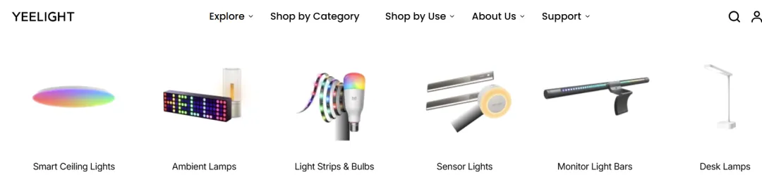 针对海外市场需求,Yeelight 的产品布局划分为两大矩阵: