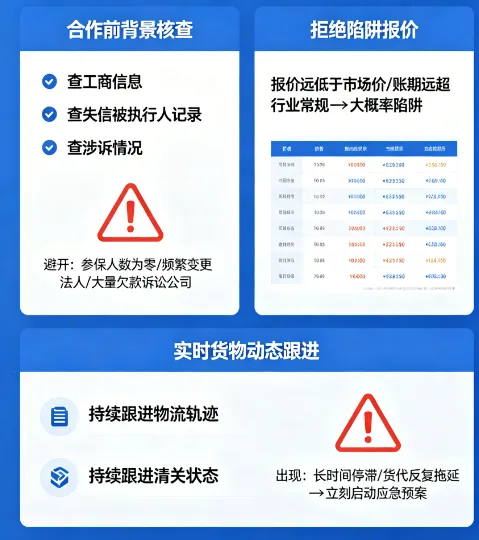 合作前必做背景核查。新货代合作前,一定要查工商信息、失信被执行人记录、涉诉情况,避开参保人数为零、频繁变更法人、有大量欠款诉讼的公司。