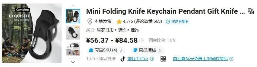 目前 TikTok Shop 上的 EDC 品类,仍以刀具、手电筒等实用工具为主打。这类产品高度贴合欧美用户的实用主义消费习惯,成功让 EDC 从单纯的“闲暇消遣品”升级为大众认可的“日常必备装备”。