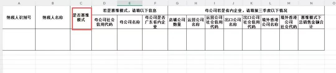 若母公司为广东省内企业,需提供五大主体信息(母公司、店铺公司、运营公司、出口公司、香港公司),包括名称、纳税人识别号、组织机构代码等;同时需上报三季度归入 “赛维模式” 的总销售额。