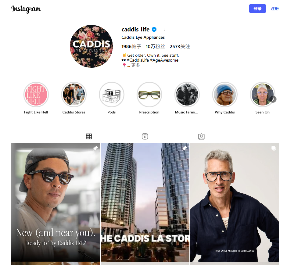 创始人 Tim Parr 因自身老花困扰意识到市场刚需,并注意到传统老花镜虽使用频繁,却常因设计简陋被视为“变老的象征”。于是他于 2017 年在美国盐湖城成立 Caddis。主打老花镜,并拓展至防蓝光眼镜、太阳镜等多功能产品,2019 年获 100 万美元天使轮融资。品牌在宣传中常结合中年模特与吉他、机车等年轻元素,传递“不去对抗衰老,而是享受当下”的态度。