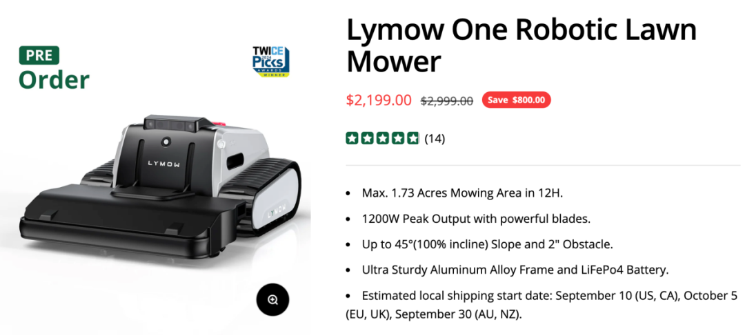 近期,Lymow One 上线自营 DTC 网站(lymow.com),20 天内狂销 240 万美元。截止 6 月 30 日,Lymow One 累计销售额已突破 1000 万美元。与此同时,来牟科技正加快线下 B 端经销商网络的布局步伐,合作对象包括区域性建材超市及专业园林设备零售商等。