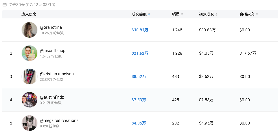 如果进入第二阶段的带货合作,才会安排加入专属优惠券和购买链接,并在尊重达人创作自由的前提下为其传递产品的核心卖点,以正常佣金进行付费合作,将流量转化为实际销量。过去 30 天(7.12-8.10),PetPivot 共与 329 位达人进行合作,尽管数量并不多,却都是沉淀下来的优质合作达人。