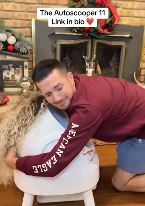 除了文章开头提及的获得 700 多万播放量的视频,另一条爆款短视频则是将美式幽默发挥到极致,一位美国小伙为猫砂盆戴上金色假发和皇冠,将其放置在跑车副驾,称其为“梦中女友”,不仅亲昵拥抱亲吻,还拍下两人兜风、约会、与朋友互动的画面。用这种夸张又幽默的方式来表达这款产品让他彻底摆脱铲猫屎的麻烦。最终这条看似抽象的视频播放量突破千万、互动率高达 13%,虽然未直接挂“小黄车”带货,却极大提升了品牌知名度。