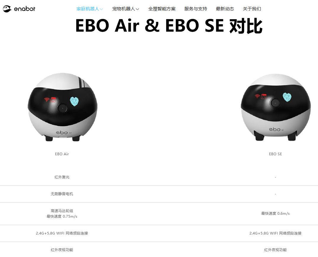2021 年,Enabot 推出 EBO AIR 和 EBO SE,价格显著降低。其中 EBO SE 的定价仅为 699 元,不到初代 EBO S 的二分之一。