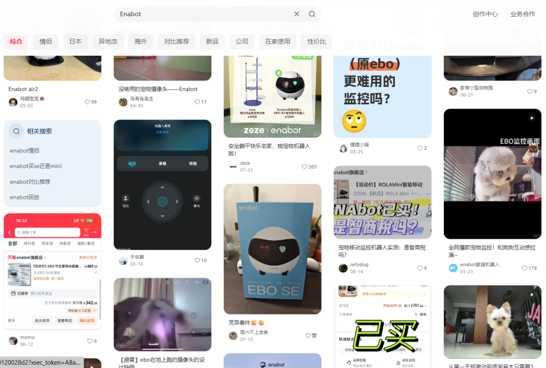 在营销方面,Enabot 采用了更加生活化的场景叙事,而非传统的“炫技式”功能宣传。团队通过在抖音创建“猫咪大脸照”和“EBO一宝机器人”两个话题,累计播放量接近 5 亿。