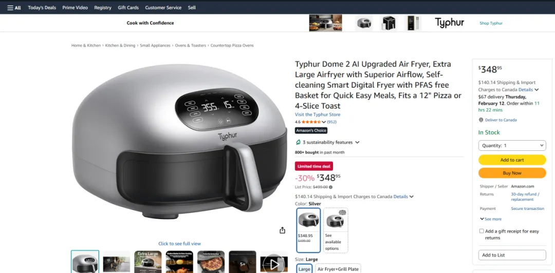 更在竞争激烈的亚马逊平台上,稳居高端空气炸锅品类销量第一的宝座。