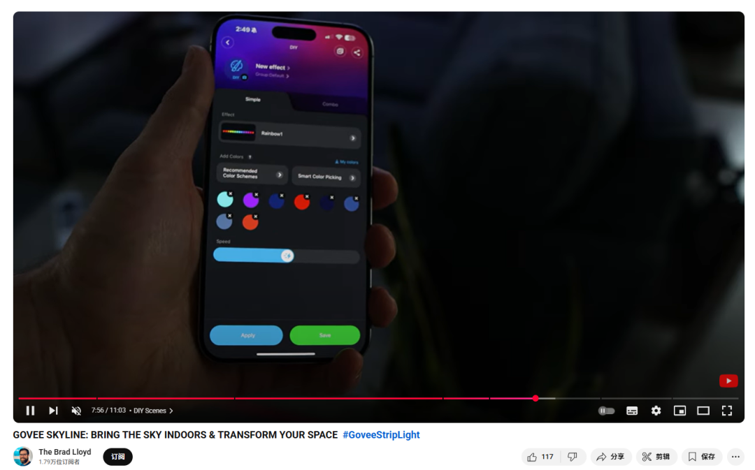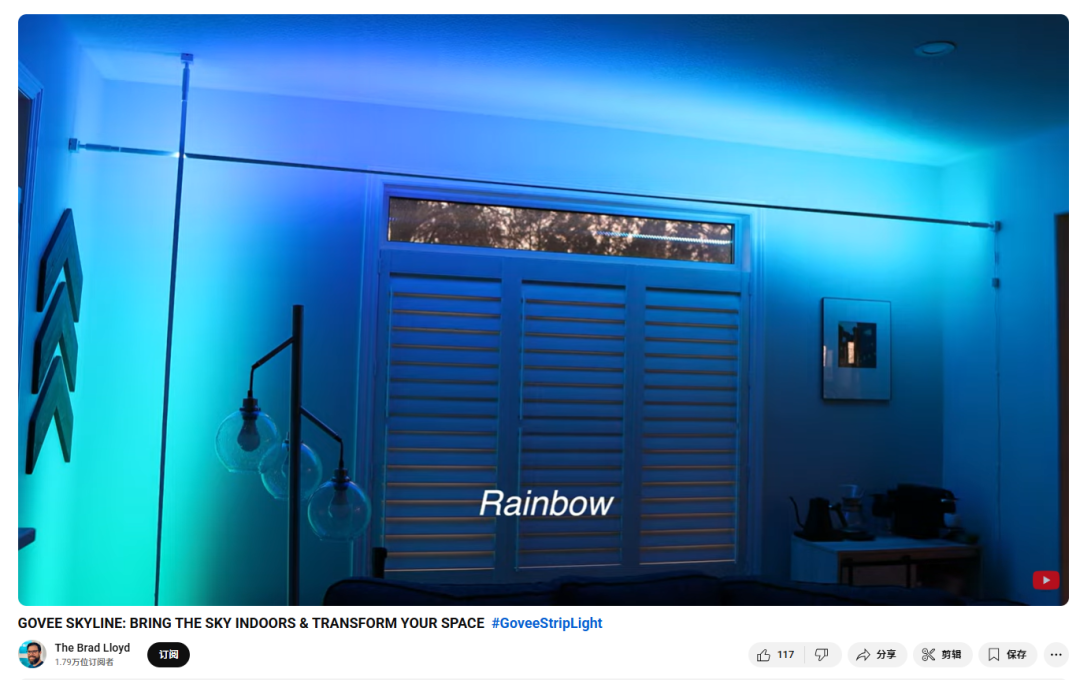 例如,YouTube博主@The Brad Lloyd围绕Govee的明星产品——模块化LED灯带套装Skyline Kit,拍摄了一条超详细的演示视频。