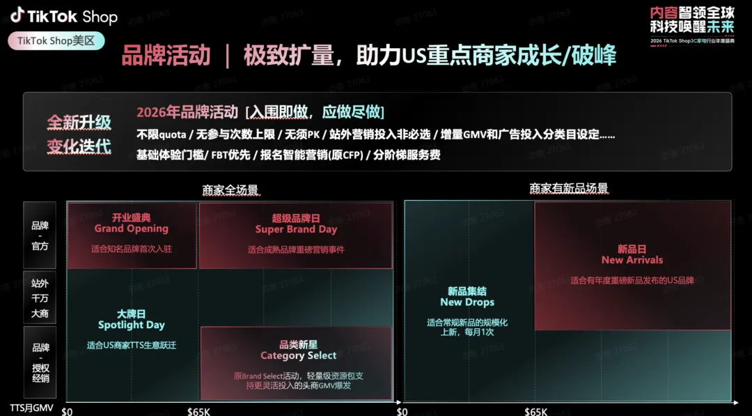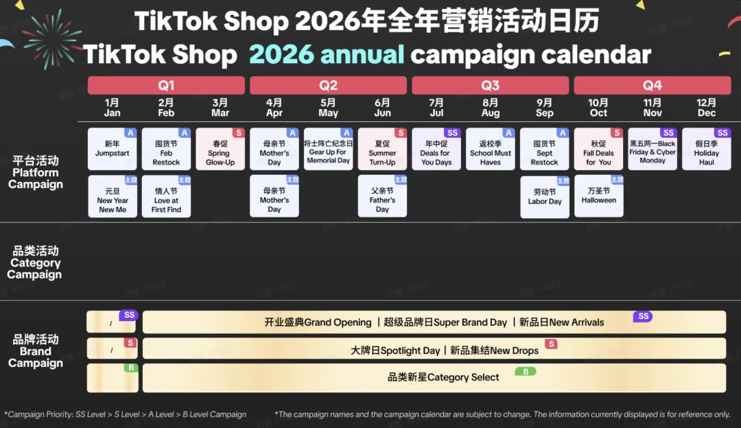 打造全年大促矩阵:聚焦核心节点(黑五、网一、圣诞、春季焕新、618 跨境版),提前规划大促节奏,实现 “大促有峰值、日常有增长”; 全链路资源倾斜:为大促节点提供平台级流量(开屏、推荐页、直播广场)、营销补贴(满减、优惠券、秒杀)、物流保障(官方物流优先配送); 精细化大促运营:推出一键报名、跨店联动、爆款打造、达人专场等工具,降低商家大促参与门槛,提升大促转化效率; 扶持高潜力商家:向供给优质、内容能力强、接入官方物流的商家倾斜大促资源,打造大促标杆商家,形成示范效应。