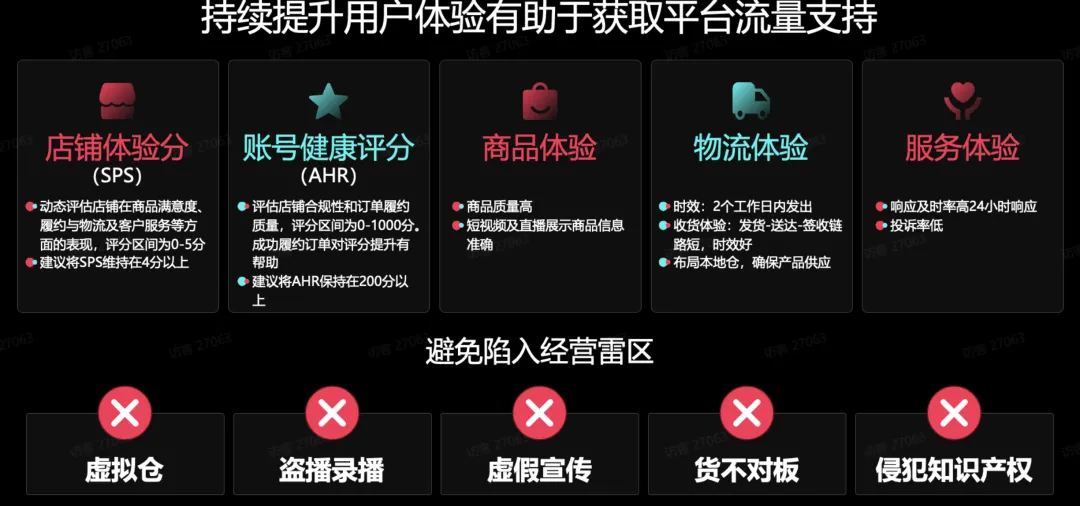 先做供给创优:清理低效 SKU,布局高价值、差异化货盘,建立品控体系 —— 这是所有操作的基础; 再做内容升级:围绕优质货盘,制作真实场景的种草内容,搭建自播 + 达人的内容体系 —— 这是流量转化的核心; 必做官方物流:接入 FBT 等官方履约体系,解决履约痛点,享受指标豁免 —— 这是经营的保障; 紧抓大促破峰:提前备货、规划内容,借助平台资源实现销量爆发,积累用户和权重 —— 这是规模提升的抓手; 长期做品牌心智:布局品牌号、私域运营,传递品牌价值,实现品牌溢价和长期复购 —— 这是经营的终局。