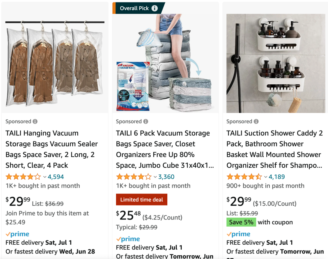 根据太力科技的数据,其真空收纳袋产品在亚马逊平台的市场占有率高达 6.03%。