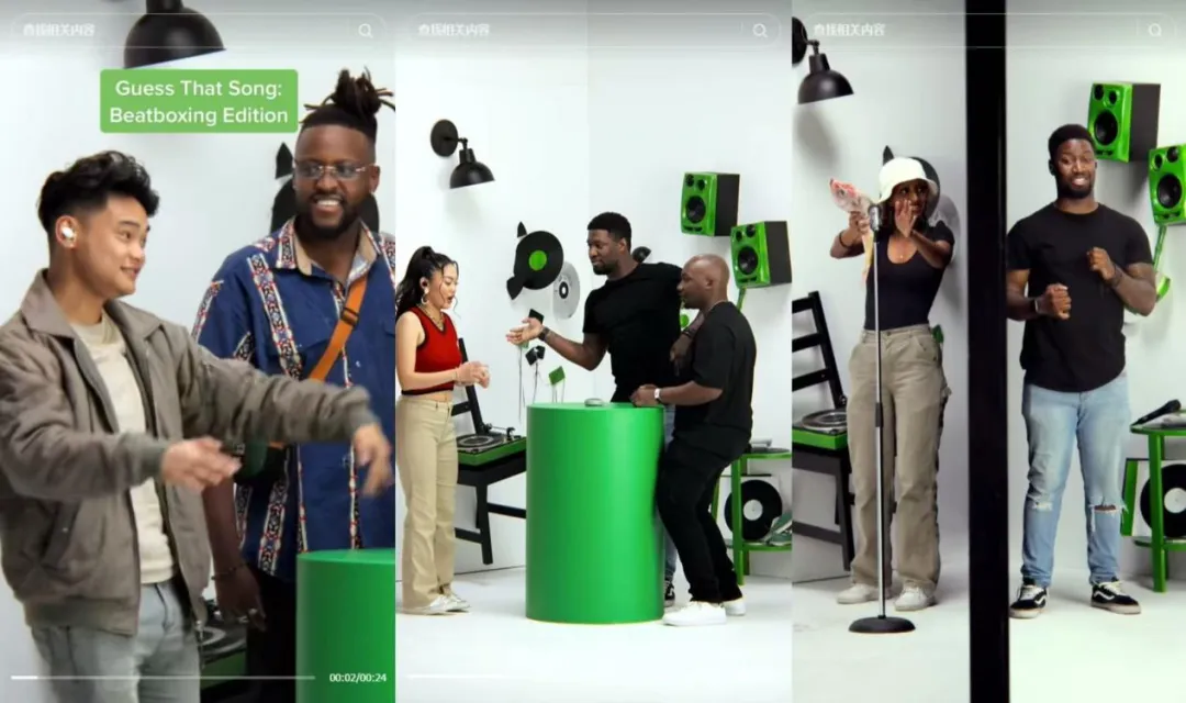比如在推广新款蓝牙耳机时,品牌就设计了趣味互动游戏,通过你比我猜、听 ASMR 声音来猜歌曲、物品,玩法简单又上头。