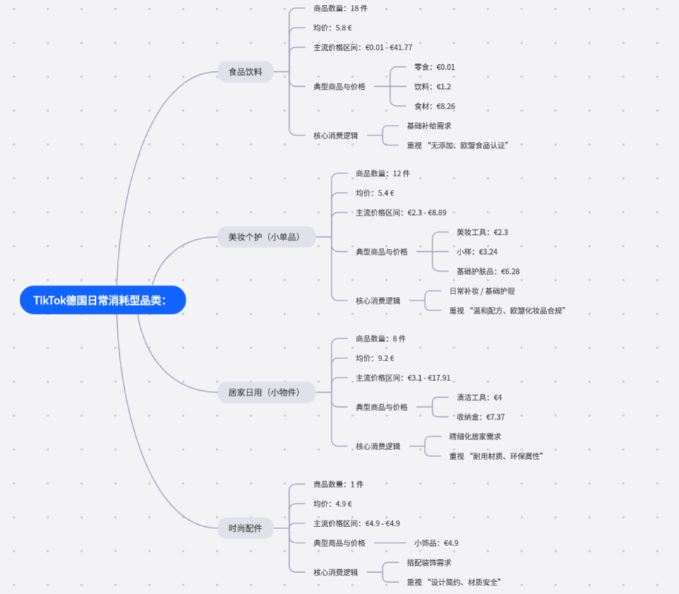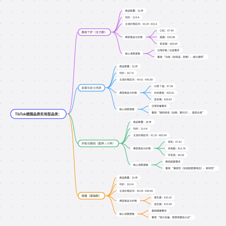 欧元区消费者重视 “商品功能实用性、成分 / 材质安全、合规性(如欧盟 CE 认证)”,不同品类的价格分布与 “功能需求强度” 深度绑定,可分为 “日常消耗型”“品质实用型”“专业功能型” 三类: