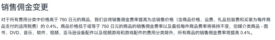 从明年 4 月 1 日起,售价超过 750 日元的商品,佣金比例将上调 0.4%;
