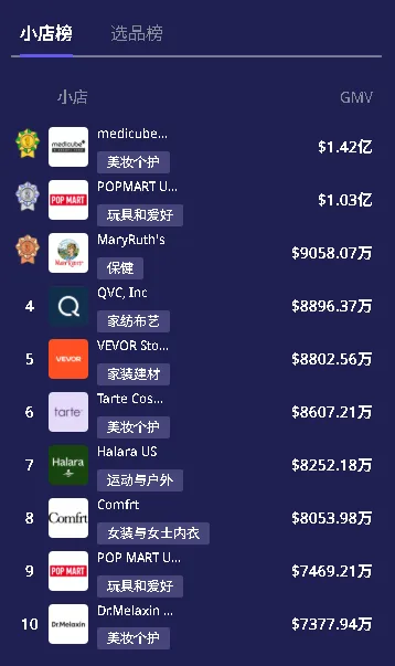 从 2025 年 TikTok Shop 美区 GMV 小店榜来看,TikTok Shop 美区的品牌化趋势也愈发明显,榜单前十名位置几乎是被品牌店所占据,如 medicube、VEVOR、POPMART、Halara 等,品牌店铺的 GMV 占比也显著上升。这并非偶然,而是品牌自带的认知基础、稳定品控能力与内容表达能力,更符合美国消费者的决策逻辑,也能更好地适应平台规则变化。