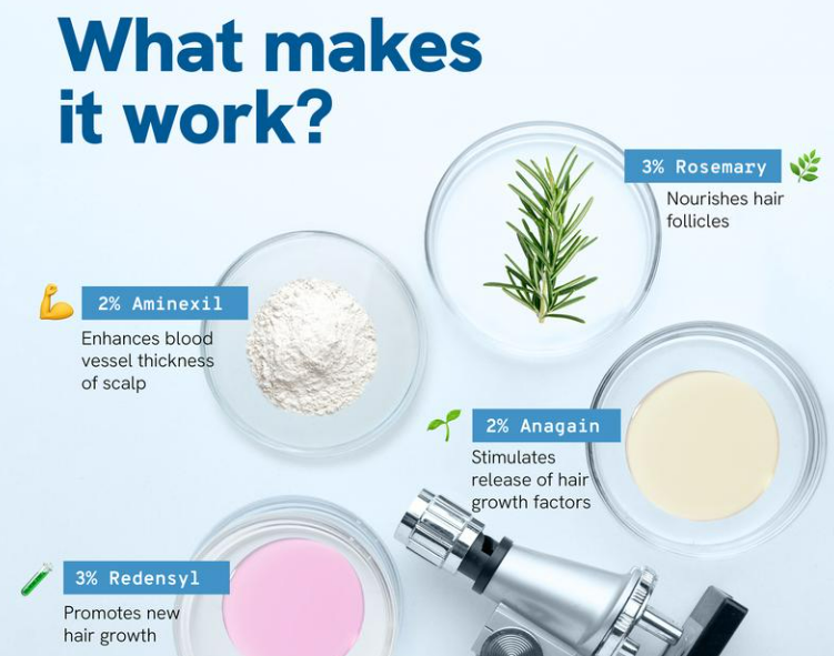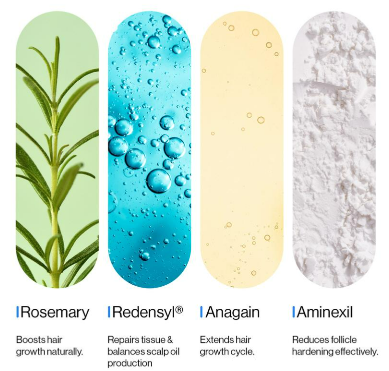 聚焦成分科学防脱:依托“3%迷迭香、3%Redensyl、2%AnaGain”的黄金配比,直击 DHT(脱发关键诱因),同时强调“无添加”配方,契合欧美市场对“天然安全”的消费偏好,用成分背书支撑高定价。
