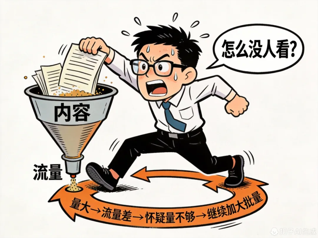 更可怕的是,这种“无效勤奋”会让你陷入一个死循环:量大 → 流量差 → 怀疑量不够 → 继续加大批量