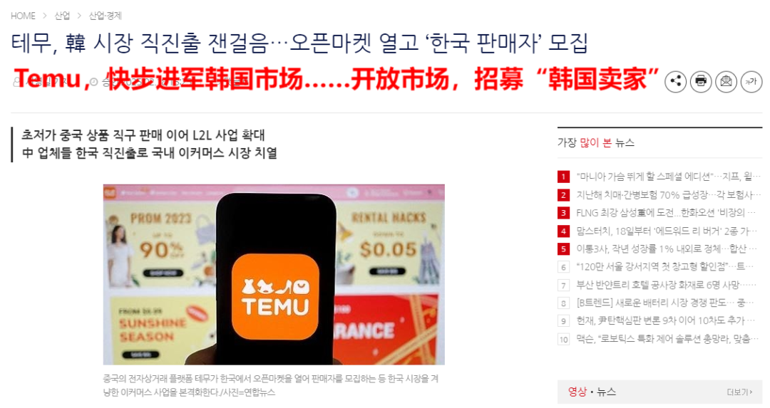 Temu 全面招募韩国卖家,图源:industrynews.co.kr