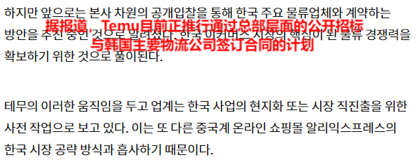 Temu正招标韩国物流公司,图源:joongang.co.kr