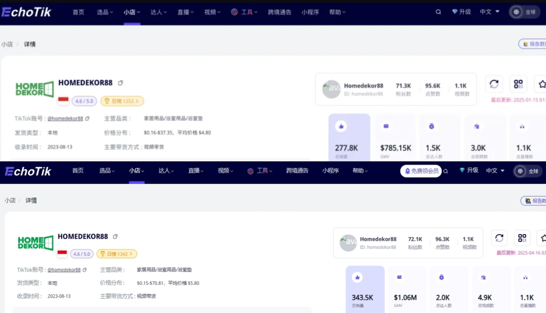 HOMEDEKOR88印尼小店GMV 图源:Echotik