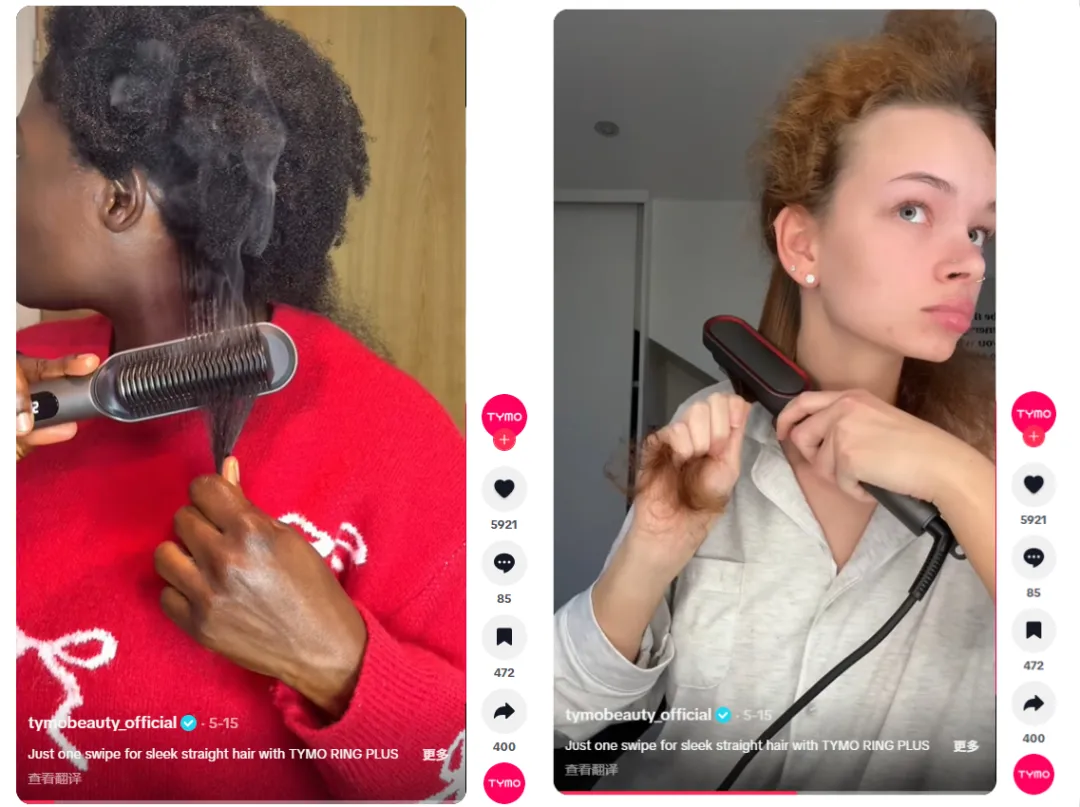在这个过程中,产品本身的“可展示性”与“可分享性”直接影响传播效率,而以直发梳、吹风机为代表的美发工具天然具有此类的特点,这也为 TYMO BEAUTY 品牌在 TikTok 运营提供了良好基础。