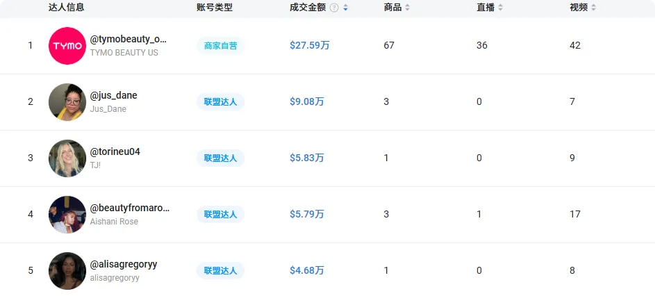 而在达人带货方面,TYMO BEAUTY 品牌的做法也很有章法。