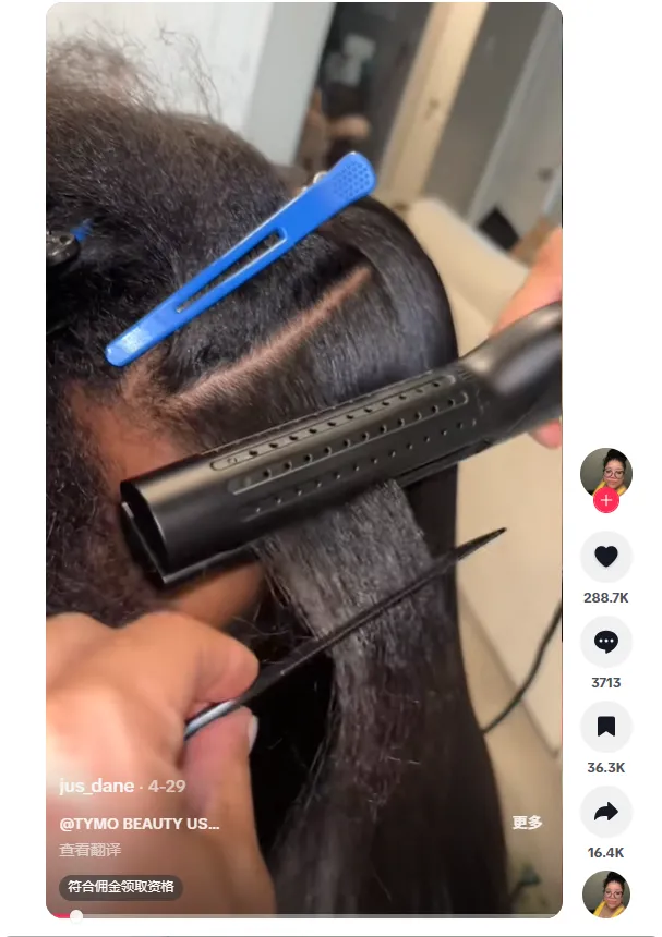 比如,@tymobeauty_official 在 2025 年 5 月份所发布的一条反馈合集,将白人和黑人两种完全不同的发质放在一起,重点突出了 TYMO 直发梳重点突出了 TYMO 直发梳的广泛适用性与显著效果,该视频最终获得了 90.75 万播放,为品牌带来了极大的声量。