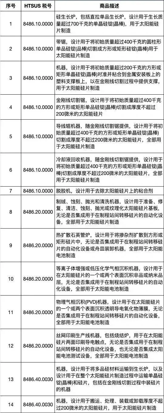 据悉,178 类产品包括 14 类与制造太阳能产品相关的设备,以及 164 类各种工业品和医疗产品,包括电动机、血压监测设备、泵组件、汽车空气压缩机及印刷电路板等。