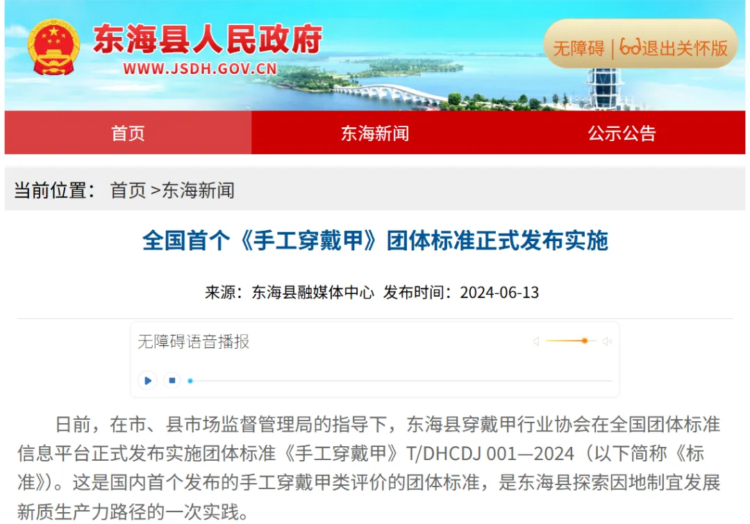 2024 年 6 月,东海县穿戴甲行业协会发布全国首个《手工穿戴甲团体标准》,将手工穿戴甲分为双 A 级、A 级、B 级 3 个级别,并对检验规则、制作工艺等给出详细标准。