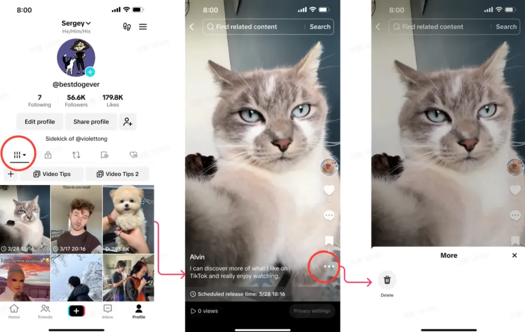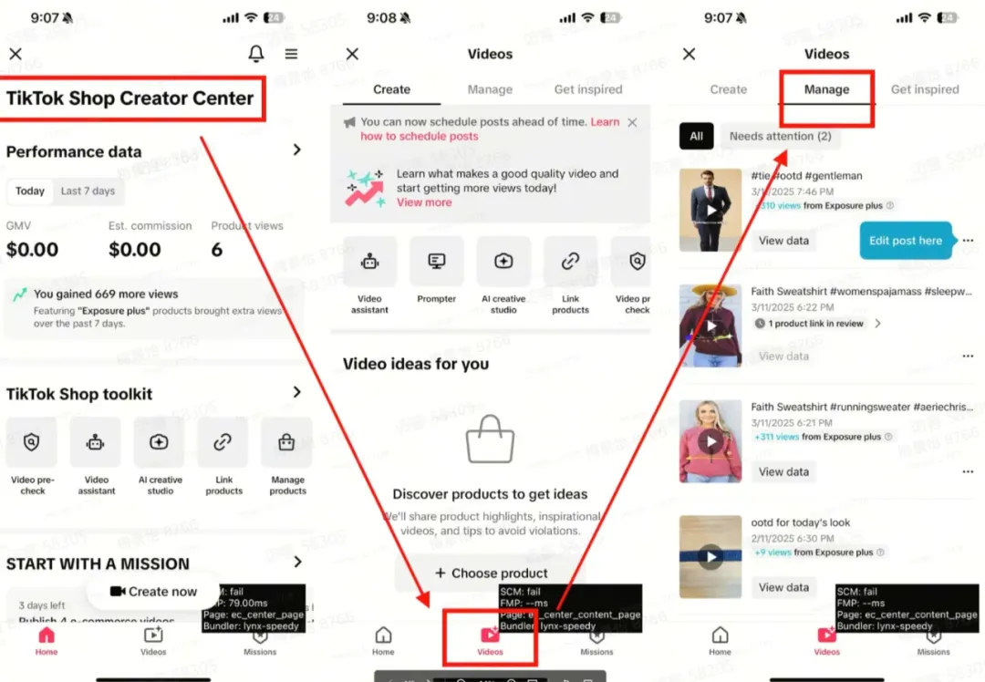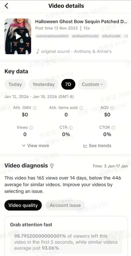 8、如何查看图文效果数据:在TikTok APP后台打开创作者中心 → 下方的tab中选择video → 点击进入后,上方tab选择Manage,即可看到所有的发布数据 → 可以选择发布的挂车图文View Data选择查看详细数据