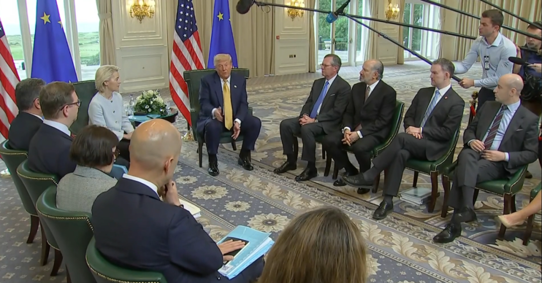 据讯,当地时间 27 日,美国总统特朗普和欧盟委员会主席冯德莱恩在英国苏格兰举行非正式会晤。会后特朗普称,美欧达成新贸易协议共识,对欧盟输美商品征收 15% 的关税,美国商品进入欧盟则直接享受 0 关税。
