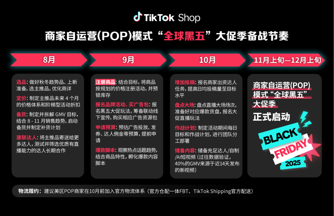 除此以外,TikTok Shop 跨境电商还针对自运营和全托管两种模式的商家,量身定制了分阶段的备战策略,为黑五冲刺蓄力。