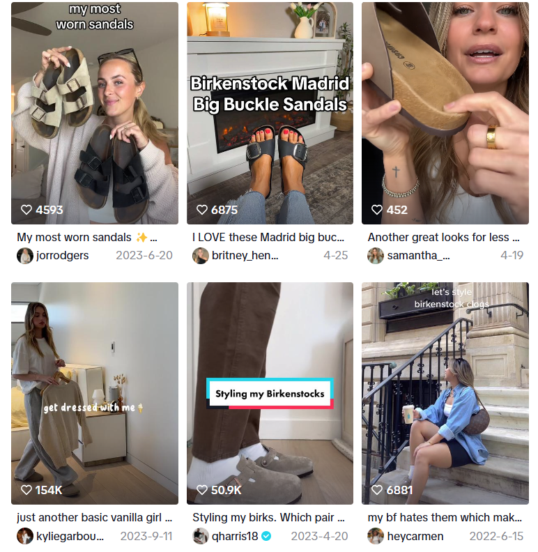 TikTok 上,勃肯鞋相关话题热度持续高涨,#Birkenstock 话题播放量已突破 10 亿次 。众多潮流达人与创意博主参与助推,通过拍摄创意短视频,展示勃肯鞋在各类场景下的穿搭效果。